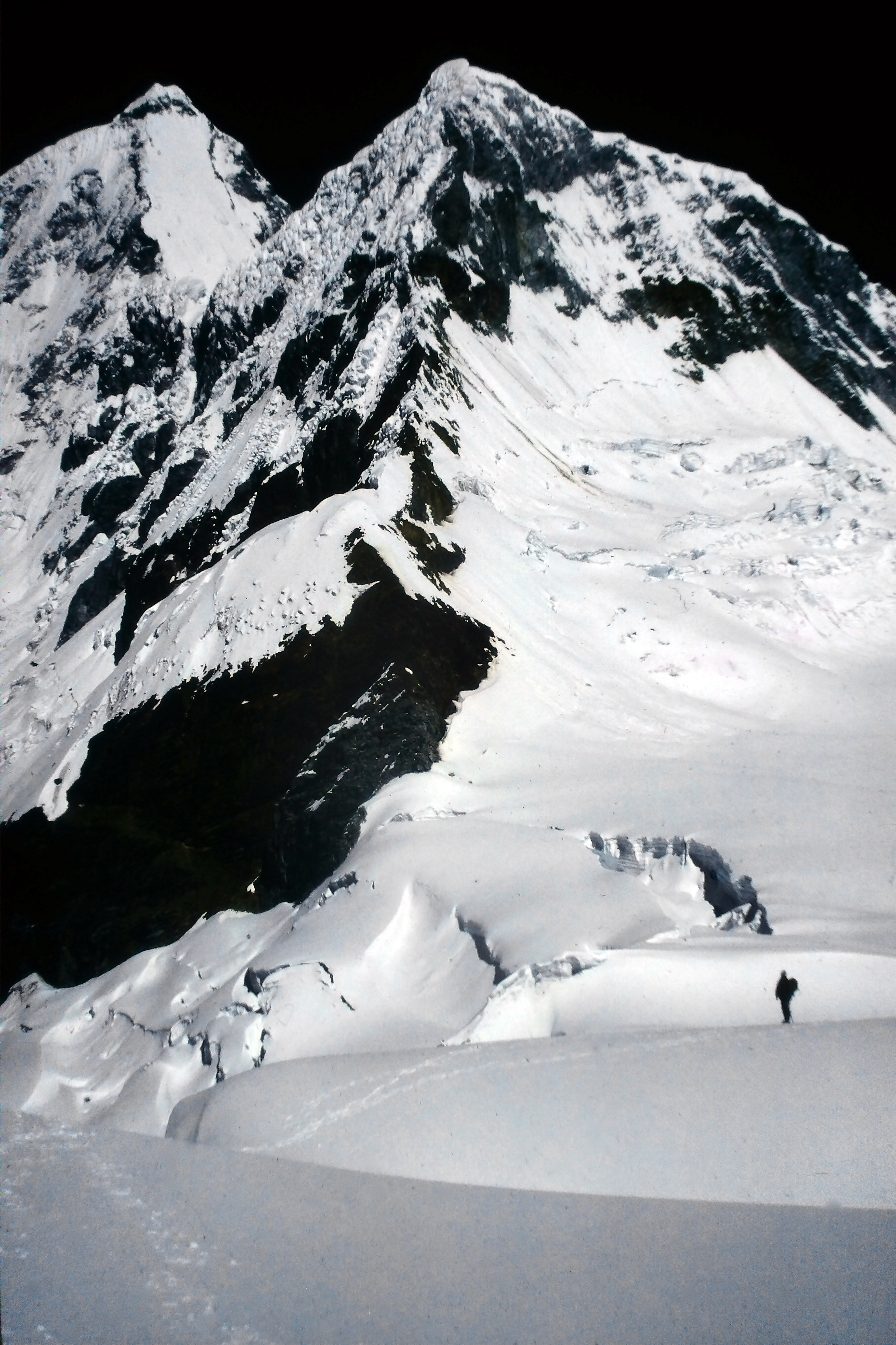 Reportage : 4 jeunes de Haute Tarentaise (Bourg St Maurice, les Arcs) décident de faire la première descente à ski du Huandoy (6400m) et du Huascaran (6700m) en Cordillère Blanche à partir du village de Huaraz. La presse locale s’en fait l’écho !